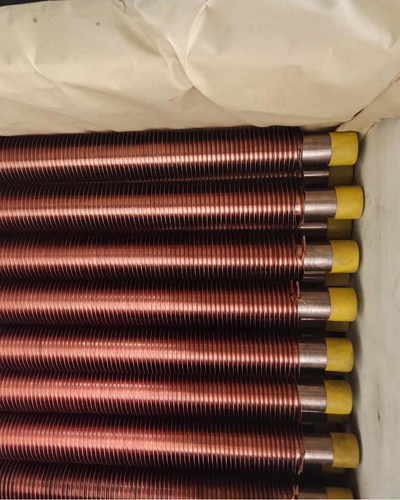 L型翅片管在光管外侧缠绕铝翅片,双L型翅片管在光管外侧缠绕铝翅片,在光管根部形成LL形状,传热性能和抵大气腐蚀能力高于L型翅片管,可应用于湿式空冷器。这种翅片管的翅片根部互相重叠与管壁接触良好,对管壁完全覆盖,可止大气对管子表面的接触和腐蚀,使用温度有一定提升;KL型翅片管,在制造时,光管表面先经过滚花,绕片时再在L根部的上面同步滚压1次,增强了不易被腐蚀性能,并提升了传热效率。